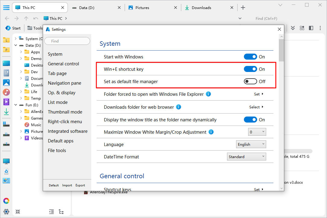 manager or configuring the Win+E shortcut key requires modifications to the registry. It's