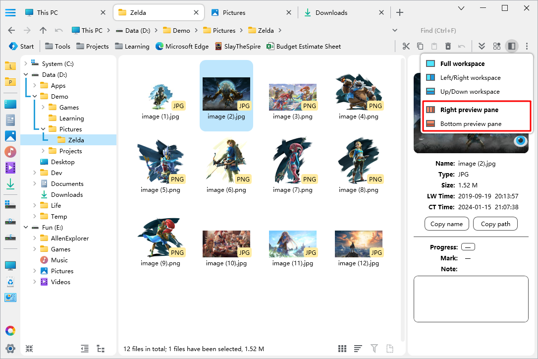 Explorer main interface, then choose the navigation pane style to open the preview pane.